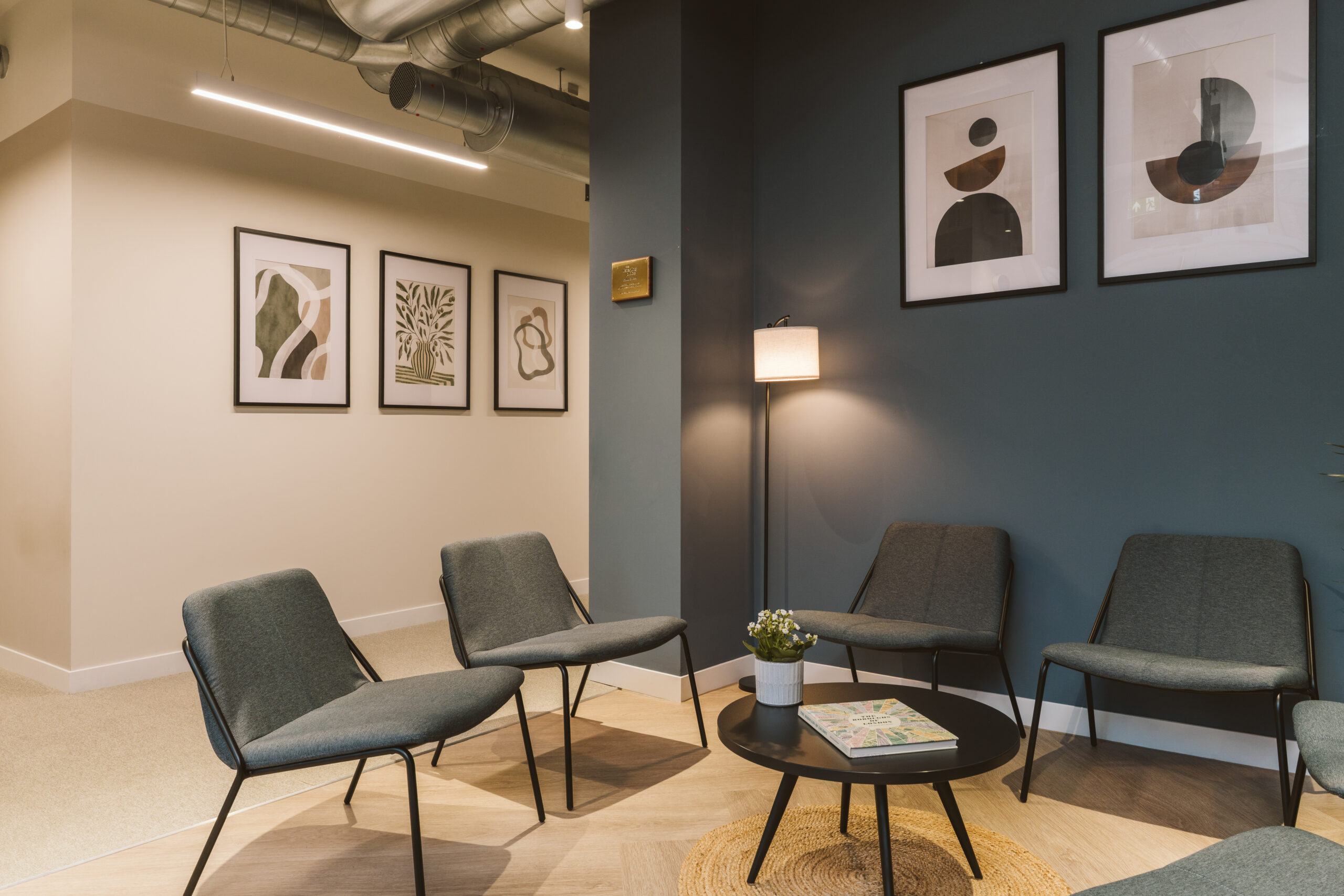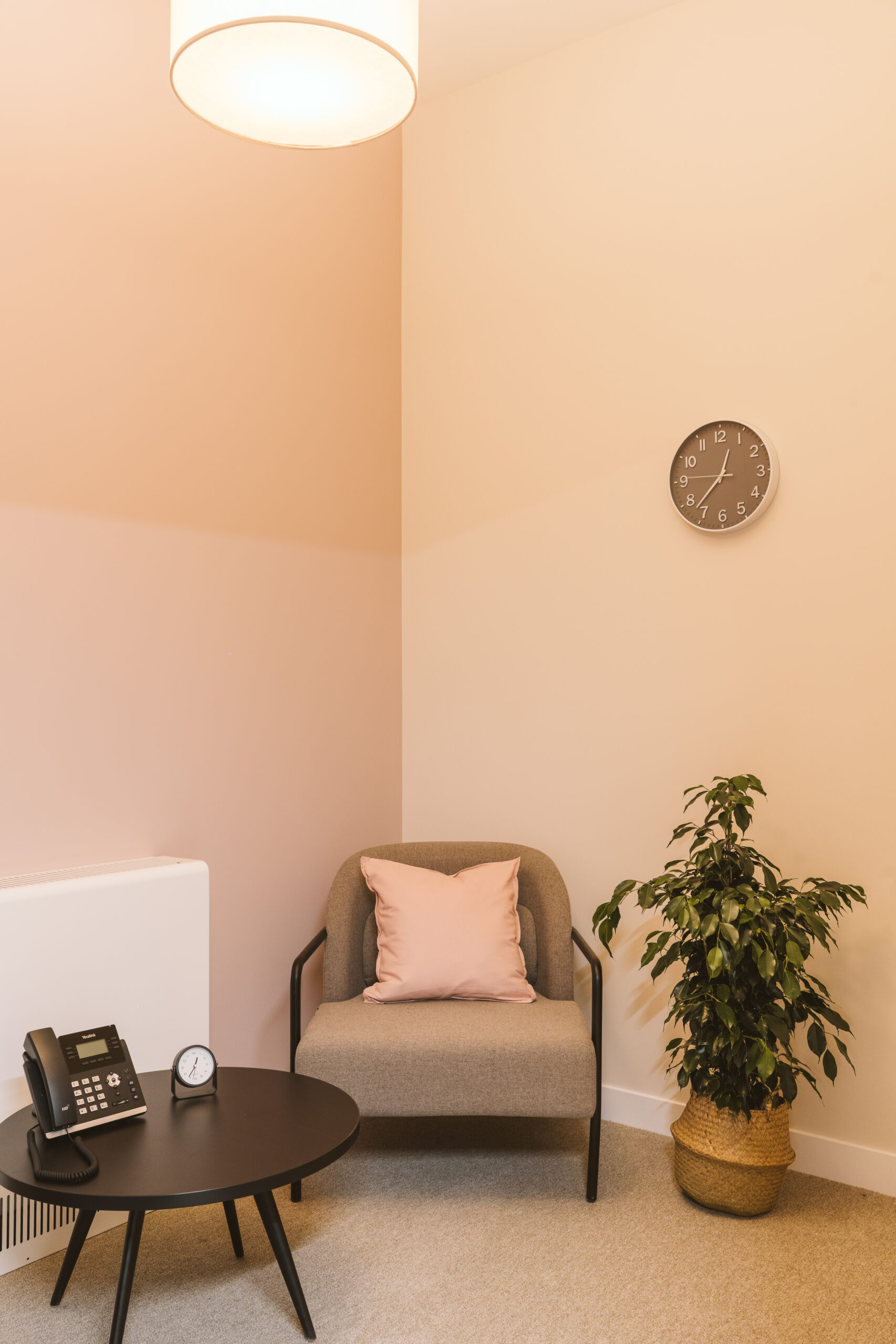 Branding was integrated in collaboration with the charity’s marketing team, ensuring it felt clear but subtle. Comfort was prioritised across every area, from appointment rooms to breakout spaces, and the arrival experience. The project was developed with input from the entire team that would be using the space, to ensure it was designed and delivered just right.